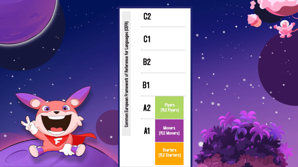 Tương đương với 3 trình độ trên, Phòng luyện thi ảo FLYER cũng cung cấp các bài thi tương ứng. Nếu luyện thi theo đúng năng lực, trẻ sẽ nhanh chóng tiến bộ và chuyển sang cấp độ tiếp theo nhanh hơn.
