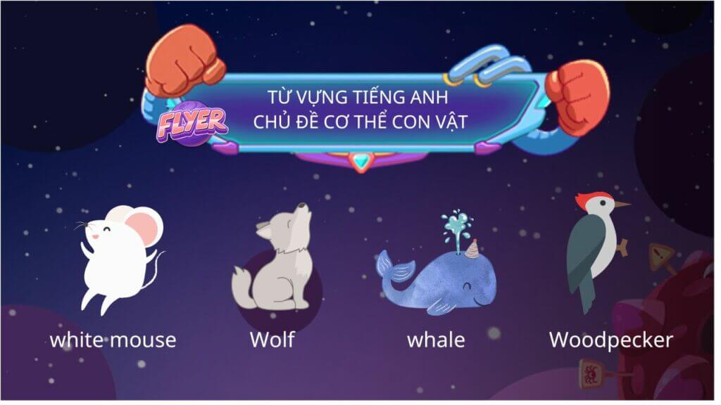 Tiếp theo là chủ đề con vật. Bạn có biết các con vật như “chuột bạch”, “chó sói”, “cá voi” và “chim gõ kiến trong tiếng Anh là gì không? Gợi ý nhé, nó đều là các từ bắt đầu bằng “w” đấy.