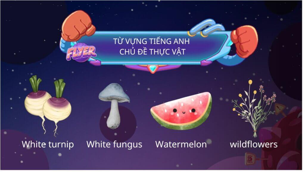 Bên cạnh thực vật thì không thể không kể đến thực vật. Sau đây là các từ tiếng Anh chủ đề thực vật: