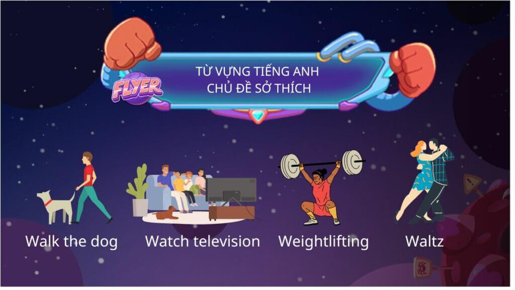 Bạn có sở thích “dắt chó đi dạo”, “xem tivi” hay “tập tạ” không nhỉ. Cùng xem trong tiếng Anh là những sở thích này được diễn tả như thế nào nhé!