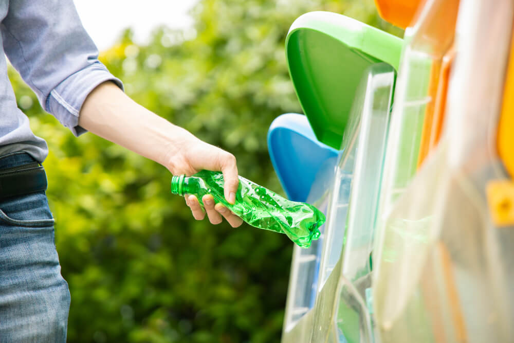 B: We can use paper bags and recycle bottles or cans.