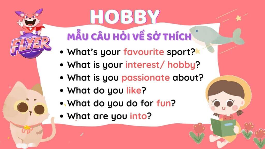 Qua các phần trên, bạn đã nắm “kha khá” vốn từ vựng về sở thích rồi đó. Tiếp theo, hãy cùng FLYER tìm hiểu cách để vận dụng vốn từ này trong giao tiếp thông qua các mẫu câu hỏi và trả lời nhé.