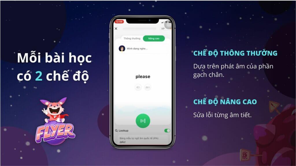 Ở mỗi bài học, phần Hội thoại và Phát âm sẽ luôn luôn có 2 chế độ: Thông thường và Nâng cao. Người học hoàn toàn có thể tự ý chuyển đổi giữa hai chế độ tùy theo nhu cầu.