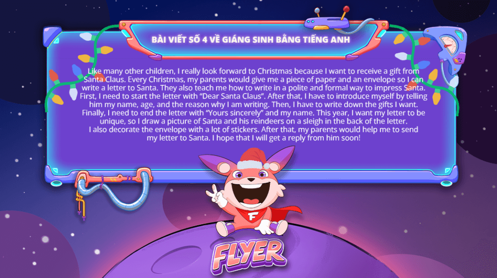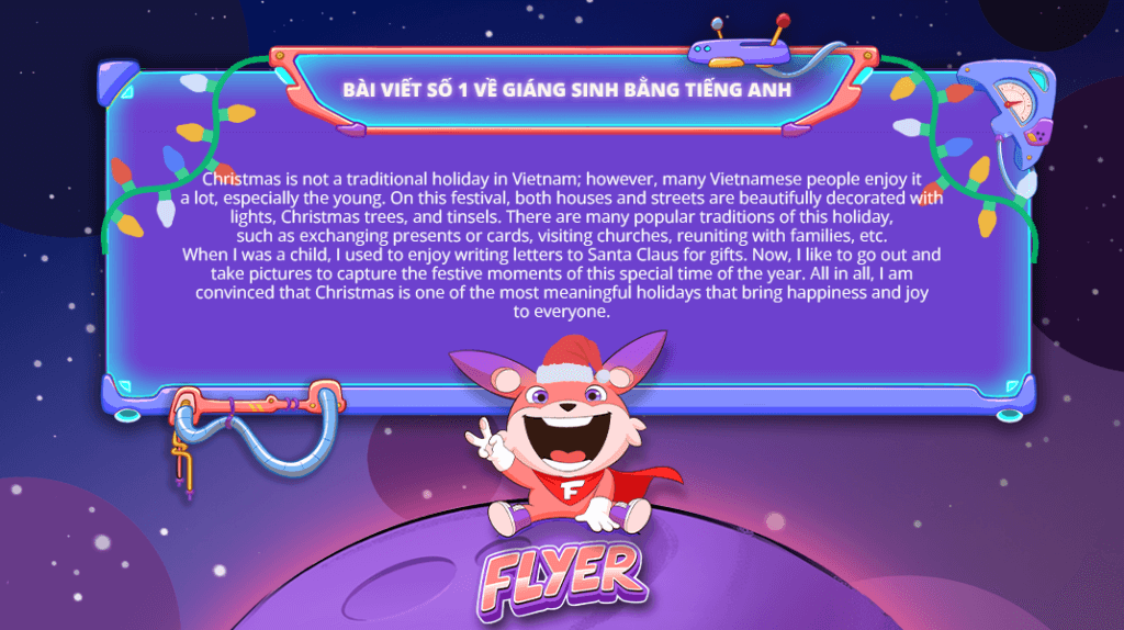 Nếu bạn vẫn còn đang “bí” trước đề bài “Viết về Giáng Sinh bằng tiếng Anh” thì đừng bỏ qua bài viết này nhé! Sau đây, FLYER sẽ “bật mí” với bạn một số từ vựng, dàn ý và bài viết mẫu cực hay để bạn dễ dàng “múa bút” về ngày lễ này. Nào, cùng bắt đầu tìm hiểu thôi!