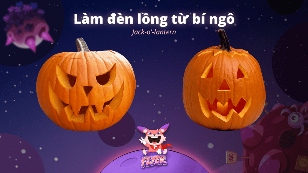 | Jack-o’-lantern | /ʤæk/-/oʊ/-/ˈlæntərn/ | Đèn lồng bí ngô (quả bí ngô được chạm khắc và thắp sáng bên trong) |