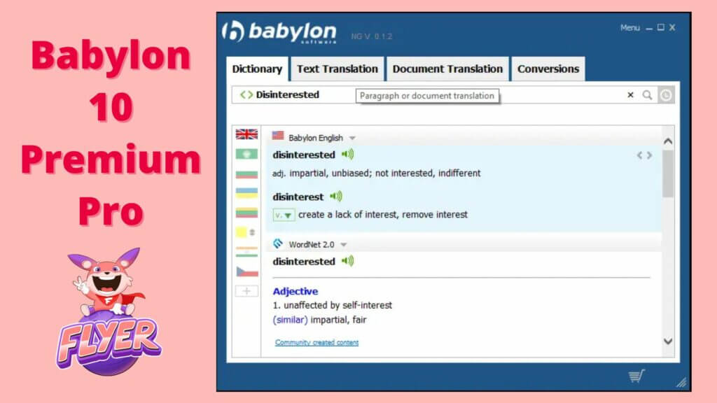 Babylon 10 Premium Pro là phần mềm dịch thuật chuyên nghiệp với nhiều tiện ích bổ sung, cho phép bạn dịch các ngôn ngữ khác nhau theo những cách tiện lợi nhất, trong đó có ngôn ngữ Anh – Việt. Cùng FLYER tham khảo một số tính năng nổi bật của phần mềm này nhé!