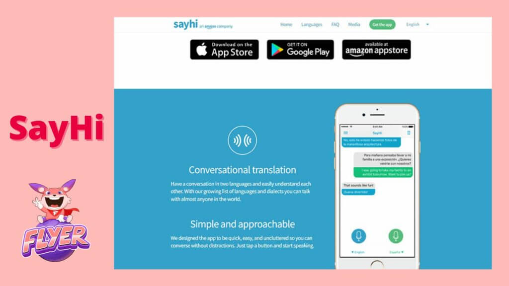 Phần mềm dịch tiếng Anh sang tiếng Việt SayHi là sự kết hợp của công nghệ dịch Microsoft cùng một loại công nghệ nhận diện giọng nói khác, theo đó là giao diện siêu đơn giản và dễ dùng. Với những đặc tính này, SayHi được đánh giá công cụ dịch thuật tuyệt vời, đặc biệt trong những trường hợp khẩn cấp cần một bản dịch nhanh chóng và chuẩn xác.